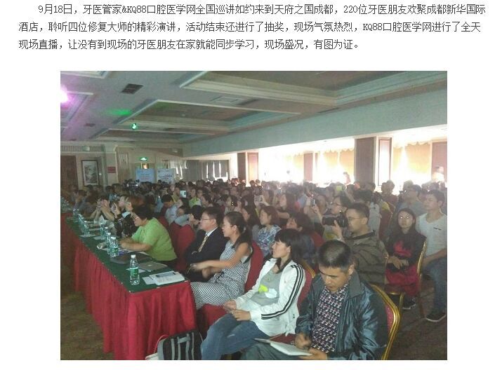 KQ88每年在全國(guó)各個(gè)大中型城市舉辦數(shù)十場(chǎng)的大型學(xué)術(shù)會(huì)議, 每場(chǎng)均邀請(qǐng)上百名的牙醫(yī)參加,是企業(yè)展示、宣傳自己并且面對(duì)面接觸客戶的好機(jī)會(huì)。